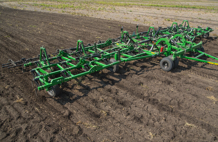 Designed to break compaction in some of the toughest conditions, the Chisel Plow is the ultimate chisel plow. Featuring well-spaced chisel shanks mounted with aggressive springs, it combines superior residue flow with maximum durability. The one-, three- and five-section models with 16- to 60-foot working widths are all engineered to provide consistent depth control from one end of the implement to the other.