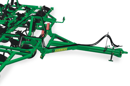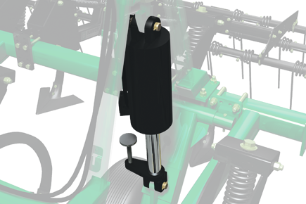 The depth setting for the entire implement can be adjusted from just one of the hydraulic cylinders.