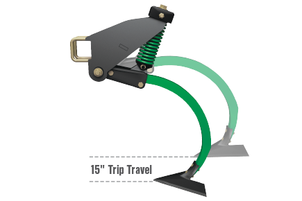 The aggressive springs help the sweeps maintain preset depth levels for consistent results. They come with a 15-inch trip clearance and standard trip pressure of 700 pounds to help minimize damage from large rocks and other obstructions. 1,050-pound trip pressure is standard on 16- to 30-foot models, and optional on 32- to 60-foot models.