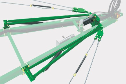 The Superweeder’s 22-foot hitch is constructed of 4-inch-by-8-inch steel tubing and has a cable auto-folding design. The cables can be hydraulically released or locked from the tractor seat. A safety spring and manual valve are also included to prevent accidental release in the case of hydraulic pressure failure.
