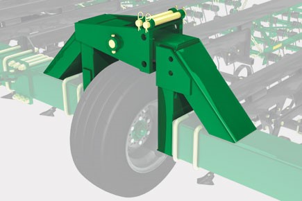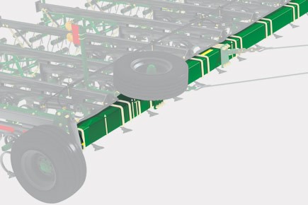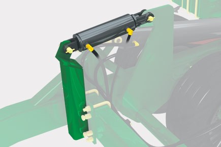 The hydraulic depth adjustment option includes hydraulic cylinders that raise and lower the drawbar and end wheels. This effectively raises and lowers all S-tines at once for simple, precise depth adjustment. (Not available on 60- and 70-foot models)