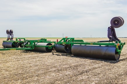 Trail type Super Rollers are a top choice for heavy duty land rolling applications. RT Series rollers require the operator to drive in reverse a short distance to unfold the units into field position. However, three-section models have a unique auto-fold system with steerable wheels, while five-section rollers use an unfolding assist arm to make this process quick and easy. These models have 3-1/2-inch hardened pins to securely lock the wings, robust oscillating dual wheels for enhanced road travel, and are available in widths from 34 to 91 feet.